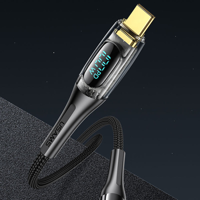 Дата кабель USAMS US-SJ591 Type-C to Type-C PD 100W Transparent Digital Display Cable (2m)